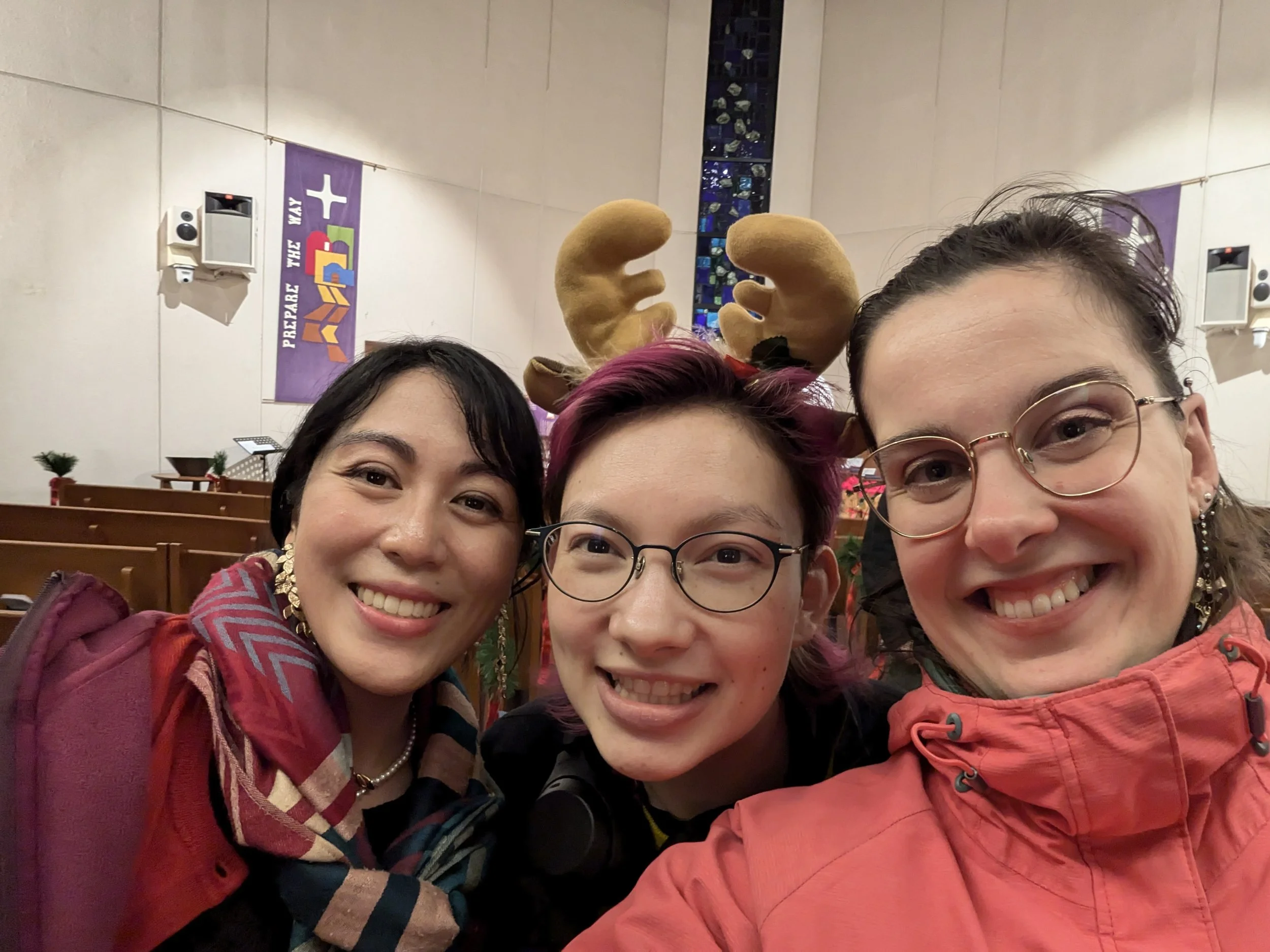 December 14th, 2025: JFO Shansi alumna Cassie Guevara (left) and I celebrate the holiday season with the annual TEC Christmas concert at the Tokyo Union Church. Ris (middle) came to see the show!