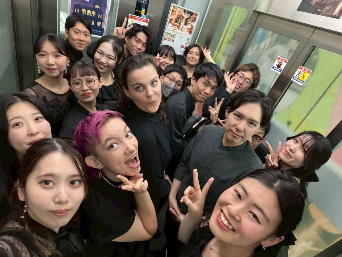 October 30st, 2025: At the end of October/early November, I performed in the Busan Choral Festival and Competition with the ensemble Sizzlin’ Mix, led by Kaoru Tani and Kota Yanagishima. It was a life changing experience that combined my love of traveling in East Asia with choral singing. Here, Sizzlin’ Mix, ready to perform in the classical category, takes a selfie in an elevator.