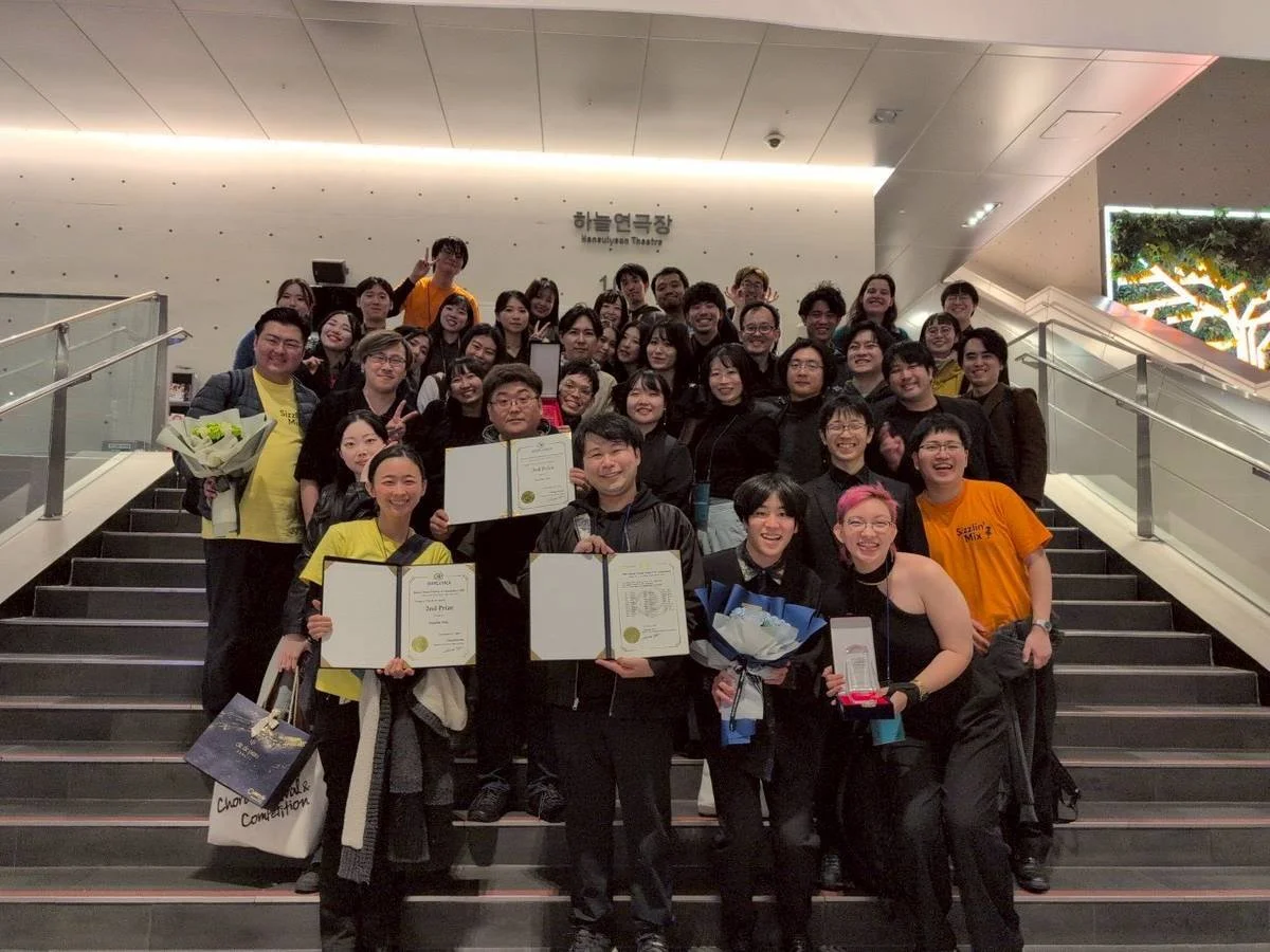 November 2nd, 2025: Sizzlin Mix celebrates with our accolades, having gotten 3rd place in the classical category and 2nd in pops and acapella thanks in no small part to a fiery solo by Ris and expert beatboxing by Shogo Seto. Truly an impressive achievement in this major choral competition.