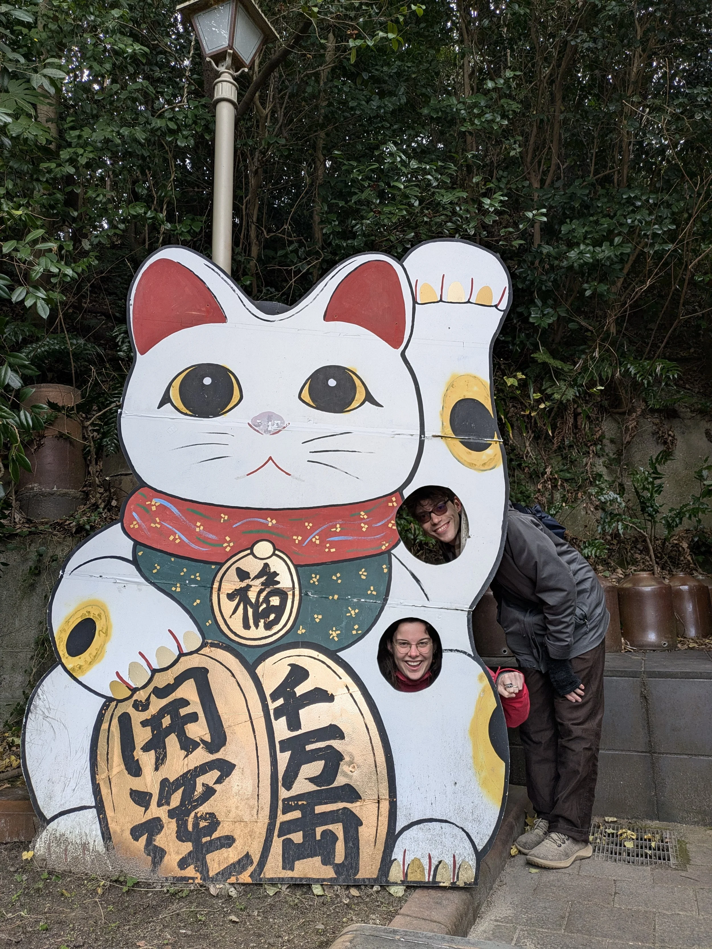 January 1st, 2026: Alex and I pose for a photo with another one of Tokoname’s manekineko.