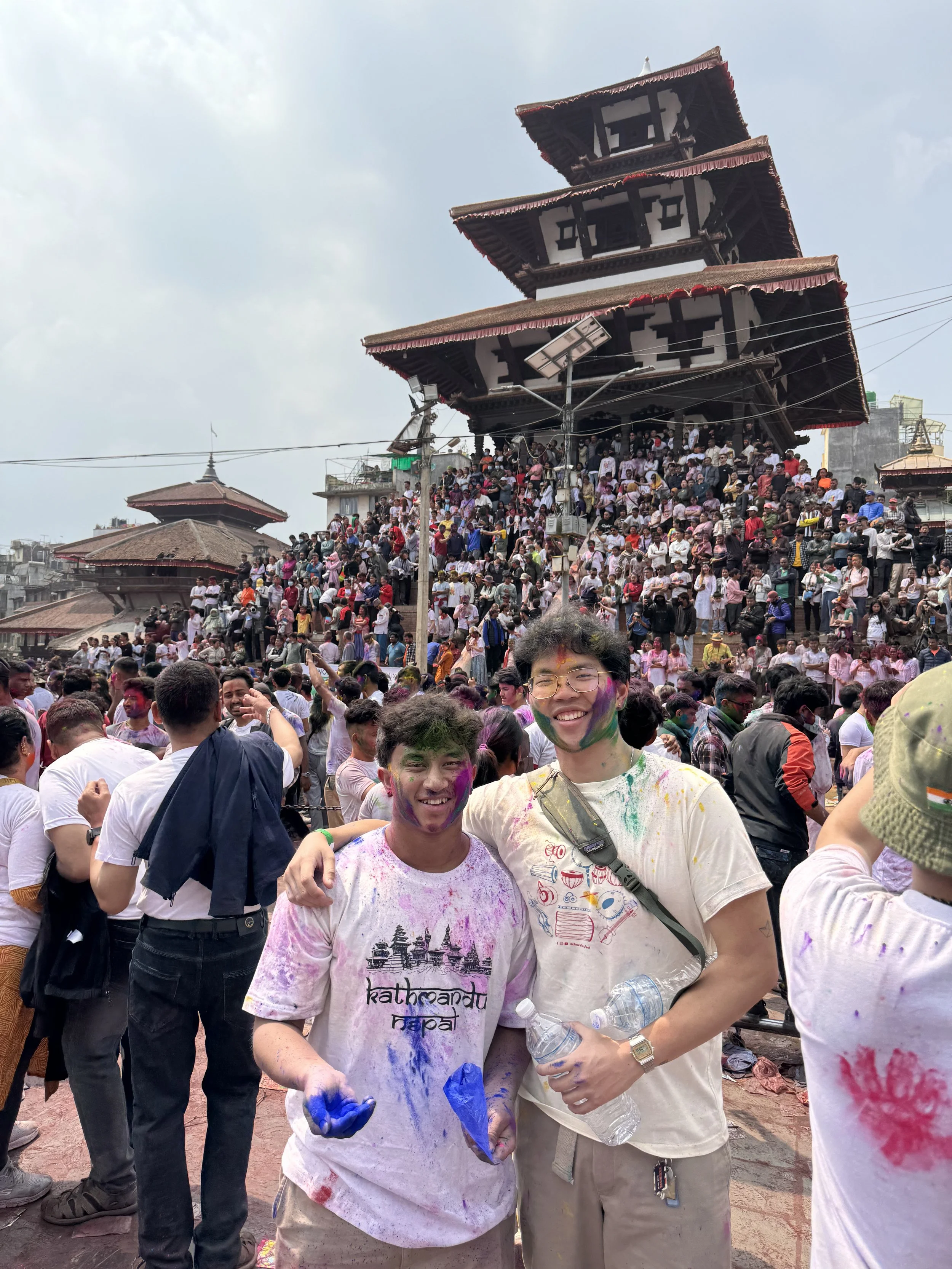 Leo celebrates Holi with his brother, Jet, in Kathmandu