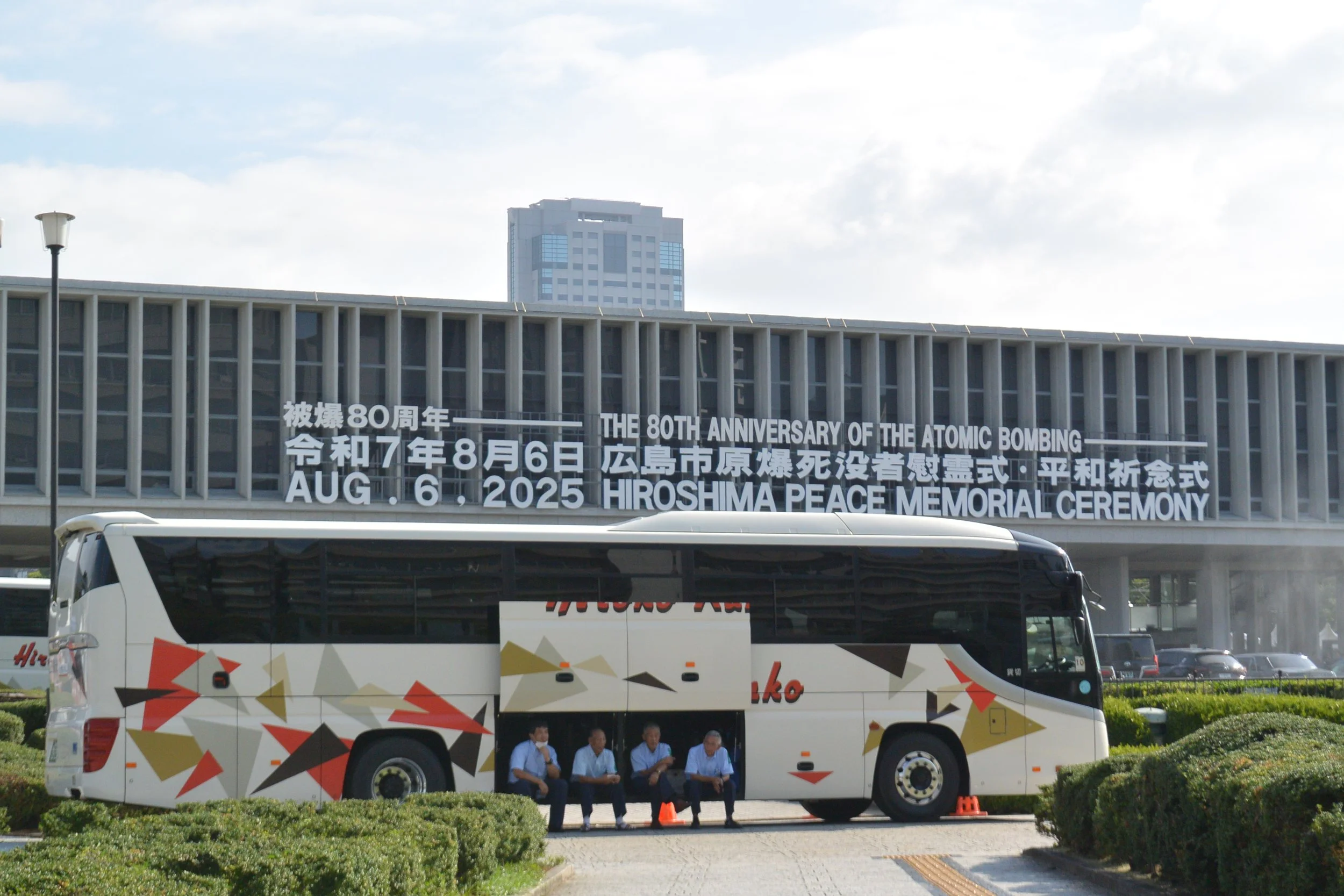 Drivers resting under shade, Peace Memorial Ceremony, 6 August 2025