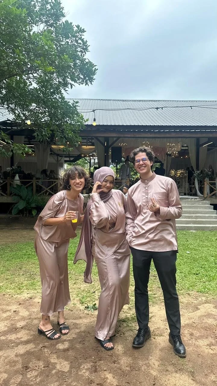 Yana, our friend Cassie, and me at the Indonesian-Russian wedding