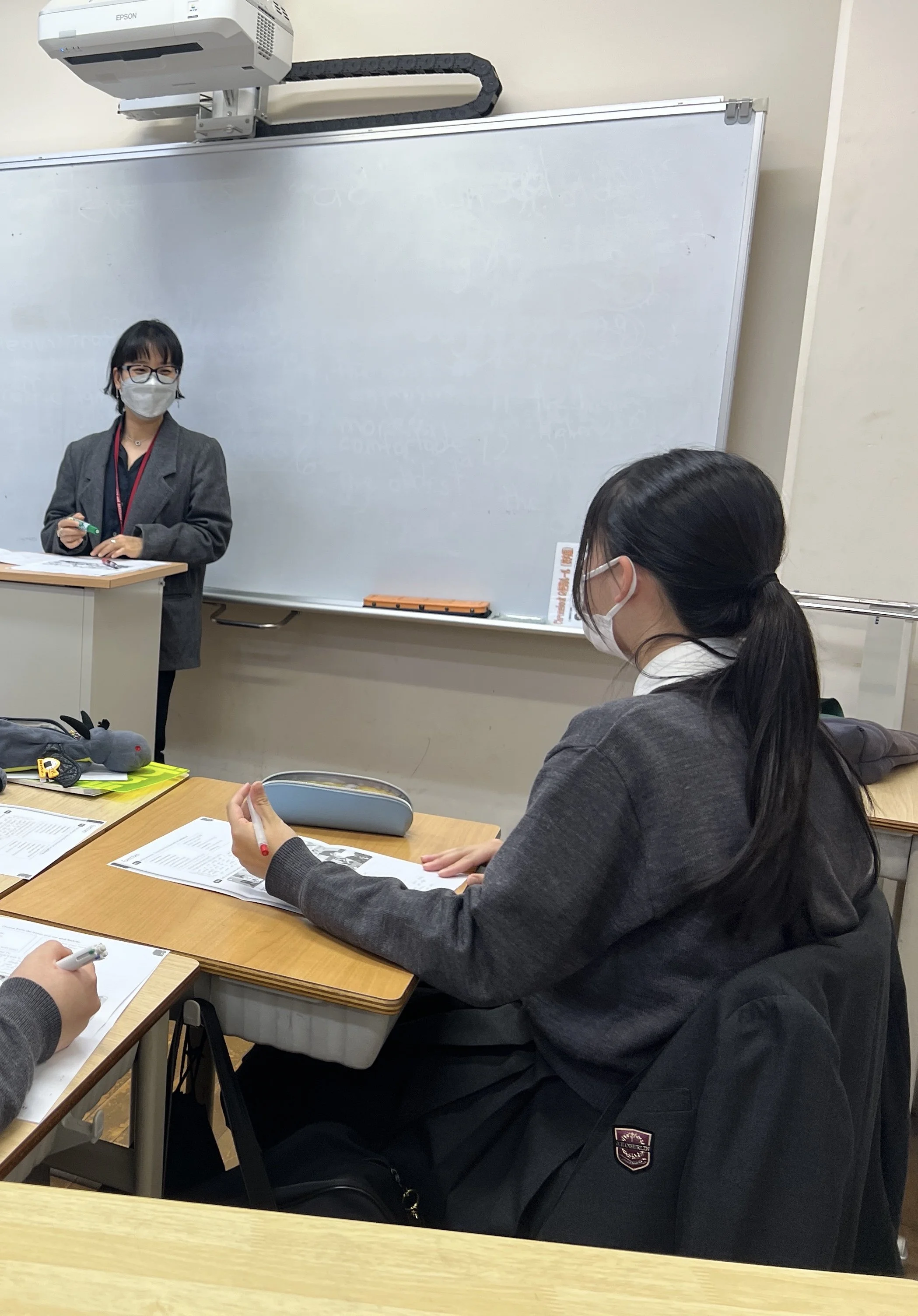 Going through the answers for a worksheet during an English class at the J.F. Oberlin Junior High School. (11/13/2025) Usually, I visit the Junior High School as a teaching assistant twice a week to help the lead English teacher out with classroom activities.